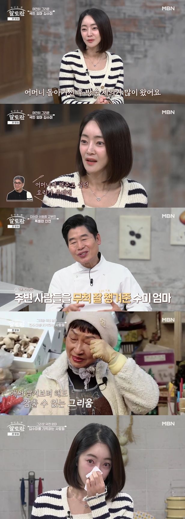 김수미가 생전 자주 찾았던 남대문 시장 상인들 역시 "허전하다. 돌아가셨을 때 깜짝 놀랐다. 어머니 생각 많이 하겠다"라고 마음을 전했다. 이어 "진짜 언니 같은 분이셨다. 너무 그립다"라며 고인을 추억하며 서효림과 상인들은 눈시울을 붉혔다.