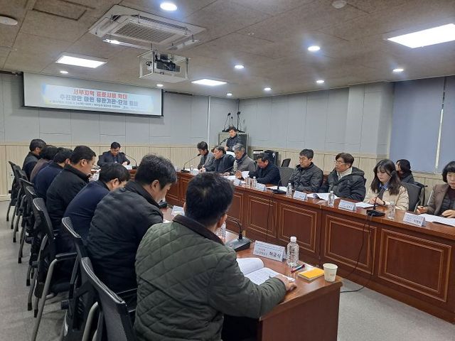 관련해 24일 도청 별관 회의실에서 농업기술원, 행정시, 지역농협, 마을 대표 등이 참석한 가운데 서부지역 표준시비 확대 방안 마련을 위한 회의를 열고 시범사업에 대한 전반적인 진행 상황을 공유하고, 서부지역 전면적 표준시비 도입을 위한 시범사업 추진방안 등을 논의했다.