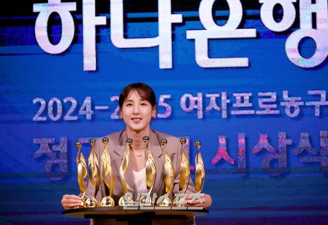 김단비는 통계상 부문인 득점상·리바운드상·블록상·스틸상·윤덕주상(최고 공헌도), 투표 부문인 MVP·우수수비선수상·베스트5까지 품었다.
