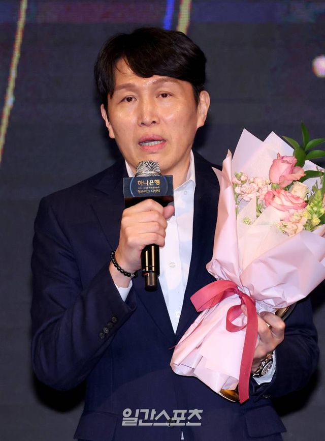 하지만 이명관은 빈손으로 돌아가진 않았다. 바로 사령탑인 위성우 우리은행 감독 덕분이다. 위 감독은 이 시상식에서 지도상을 수상했다. 위성우 감독은 올 시즌 우리은행의 정규리그 우승을 이끌며 지도력을 인정받았다. 우리은행은 통산 15번째 정규리그 우승을 이뤘다. 위 감독은 부임 후 개인 통산 10번째 리그 우승이다.