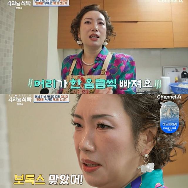 늘 인상 쓴 콘셉트도 고충이었다. 정경미는 “매일 이러고 있으니 주름이 엄청나게 잡혀서 보톡스를 맞았다”며 매끈한 이마를 자랑했다.