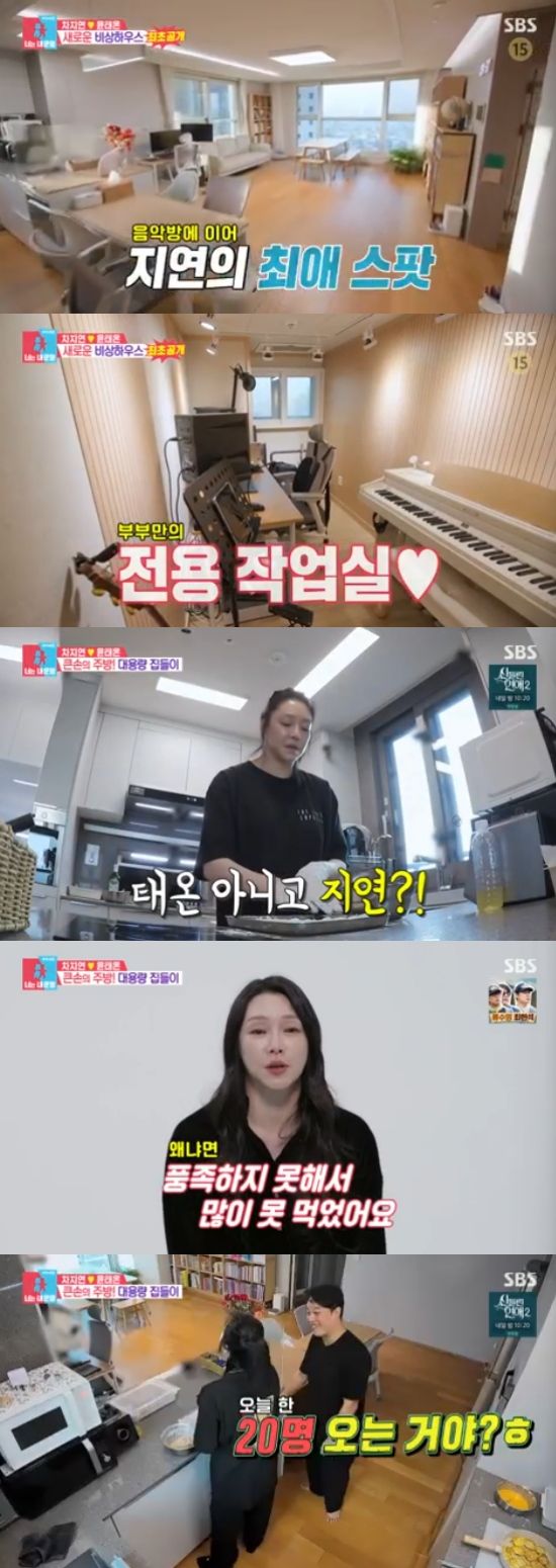 이날 차지연♥윤태온 부부가 10년만에 남양주에서 서울로 이사를 했다. 이날 공개된 새집은 속이 뻥 뚫리는 통창뷰를 자랑했다. 특히 윤태온이 특별히 준비한 방음 시절이 완벽한 음악방까지 갖춰 눈길을 끌었다.