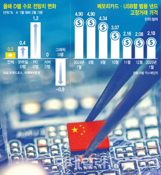 업계 안팎에서는 중국의 소비 부양책으로 재고 과잉이 해소되고 소비 심리가 개선되면서, 올해 하반기부터는 레거시 메모리 가격이 반등할 것이라는 전망이 나온다. 김동원 KB증권 연구원은 “이구환신 정책이 스마트폰과 PC 수요를 자극하면서 메모리 재고는 이번달 이후 가파르게 감소할 것”이라며 “다음달부터는 메모리 신규 수요가 발생하고 하반기에는 범용 메모리 가격이 상승 전환할 것”이라고 내다봤다.