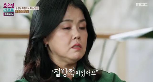 24일 방송된 MBC '오은영 리포트 – 결혼 지옥'에서는 남편이 애 같다는 아내와 아내의 잔소리에 지친다는 남편, '어른아이' 부부가 오은영 박사를 찾아왔다.