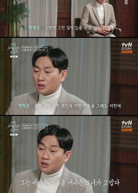 박형준은 "놀랍다. 전혀 모르니까. 그런데 그런 일이 있을 수도 있는 거고 그거를 또 잘 마무리를 지으시고 잘 되신 거니까 보미님이 그런 본인의 어떤 아픔을 말씀을 하기가 힘들었을 텐데 너무 편안하게 해주셔서 감사하다. 뭐라고 드릴 말씀은 없었고 크게 놀랄 만한 일도 아니라고 생각한다. 누구나 다 아픔은 있는 거고 그걸 극복하면 된 거다. 둘이 사랑만 하면 그런 것들은 전혀 문제가 되지 않는다. 상대방이 좋다면 아무것도 아니다"라며 담담히 말했다.