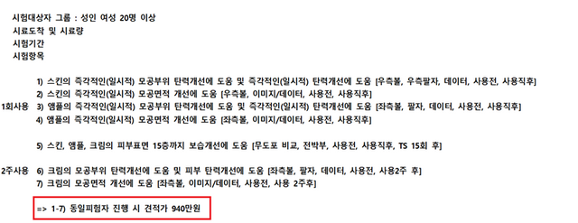 실제로 국내 한 화장품기업이 피부임상센터로부터 받은 견적서를 보면 한 명의 피시험자에게 ‘스킨+앰플+크림’을 좌우 볼, 전박부에 적용하면서 4가지 제품에 대한 임상결과보고서를 각각 제출한다는 내용으로 견적가격이 적시돼 있다. 즉 한 사람에게 여러 제품의 임상을 진행한 후 각각의 제품마다 보고서를 따로 내는 것. 이에 제품 간 상호작용을 완전히 배제하는 인체적용시험의 독립성 원칙은 물론 윤리성에도 반한다는 우려가 나오고 있다.