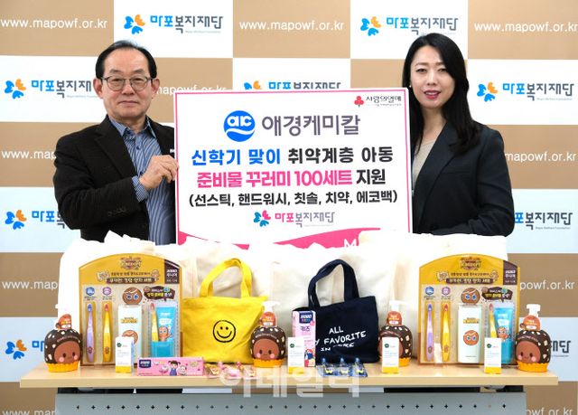 ‘준비물 꾸러미’는 아동 생활에 필요한 핸드워시, 칫솔, 치약, 선스틱 등 4종으로 구성됐으며 애경케미칼 직원들이 직접 참여해 포장했다. 마포복지재단을 통해 지역 내 도움이 필요한 가정의 아동들에게 전달될 예정이다.