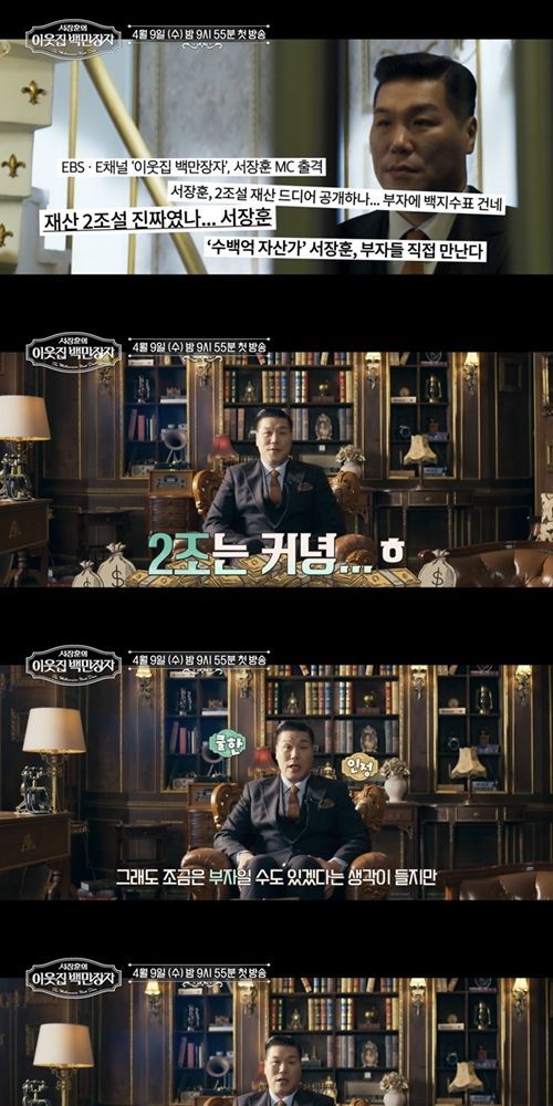 이런 가운데 ‘이웃집 백만장자’가 공개한 티저 영상에서는 서장훈이 직접 '2조 부자설'에 대해 입장을 밝혀 이목을 집중시킨다. 먼저 서장훈은 “2조 부자가 맞는 겁니까?”라는 직설적인 질문에 “2조는커녕 2조를 벌려면 수십 번, 수백 번 다시 태어나야 될 것”이라고 부인했다. 그러면서도 “그래도 조금은 부자일수도 있겠다”라며 쿨하게 인정했다. 부자여서 좋은 점은 “하기 싫은 것을 안 해도 되고, 보고 싶지 않은 사람을 보지 않아도 된다”라고 솔직한 답변을 내놓기도 했다.