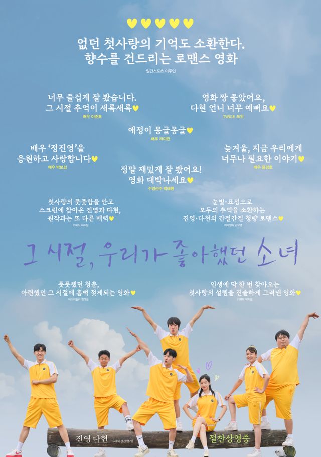 이날 공개된 리뷰 포스터에는 노란 체육복을 입은 진영, 다현과 고등학교 친구들인 손정혁, 김요한, 이민구, 이승준, 김민주 배우의 청춘 가득한 모습이 담겨 영화가 전하는 활기찬 에너지와 따뜻한 감성을 더욱 강조하고 있다.