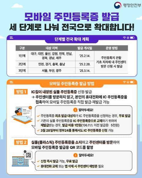 모바일 주민등록증은 온‧오프라인 모두 활용할 수 있는 신분 확인 수단으로써 디지털 행정서비스 혁신에 따라 변화하는 모바일 환경의 확대에 발맞춰 운전면허증과 국가보훈등록증에 이어 도입되며 기존의 실물 주민등록증보다 안전‧편리하면서 불필요한 개인정보가 노출되지 않는다는 장점이 있다.