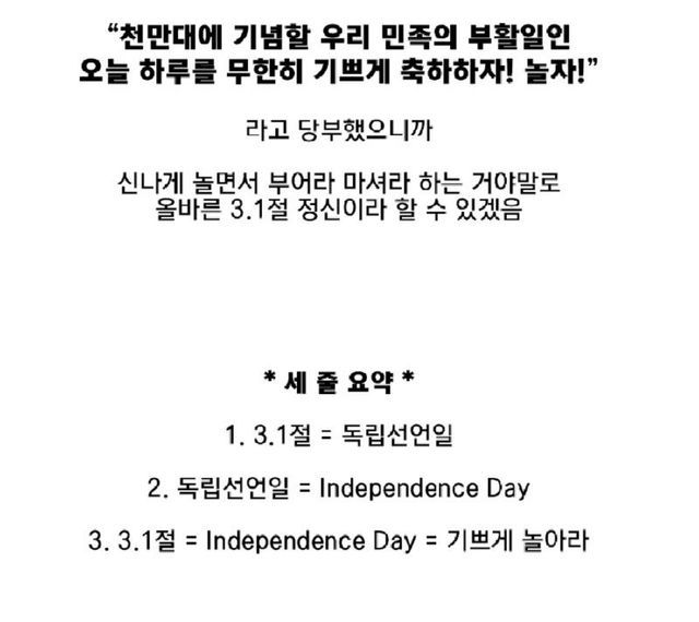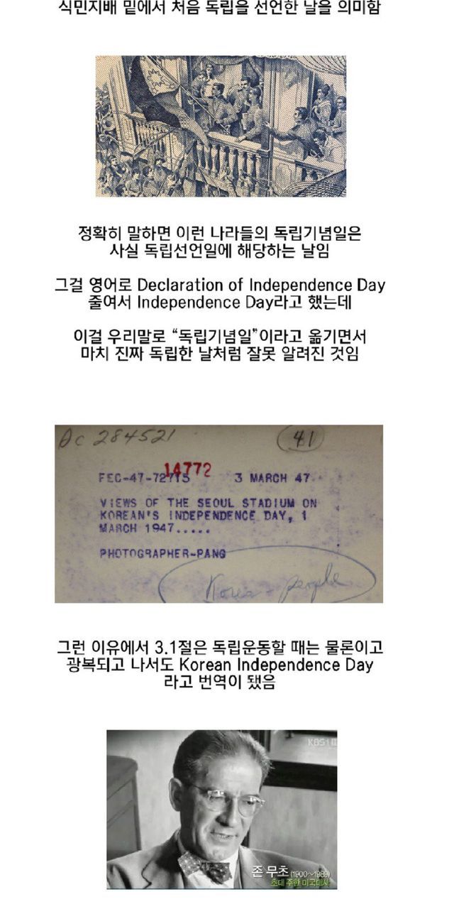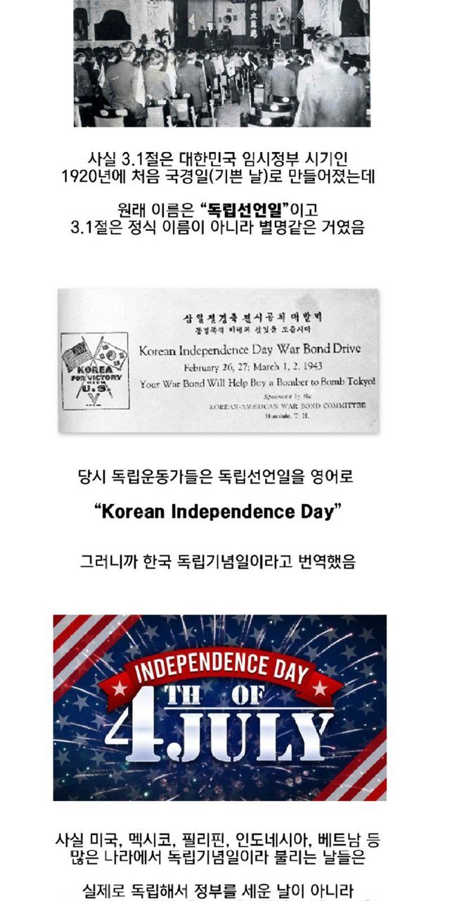 정확히 말하면 원래 3.1절 이름이 "독립선언일"이고 3.1절은 미국 4th of july같은 별칭인데