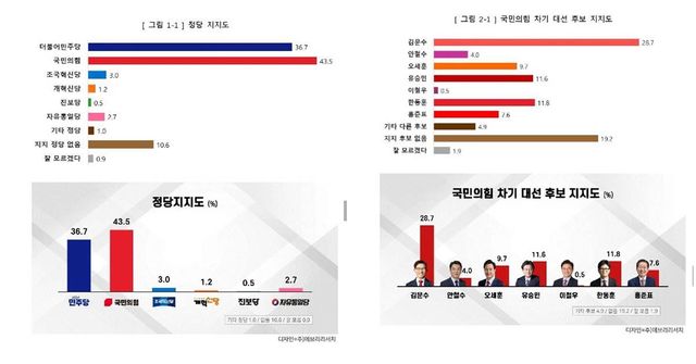 (왼쪽부터)정당지지도 및 국민의힘 차기 대선후보 지지도/이하 미디어로컬 제공