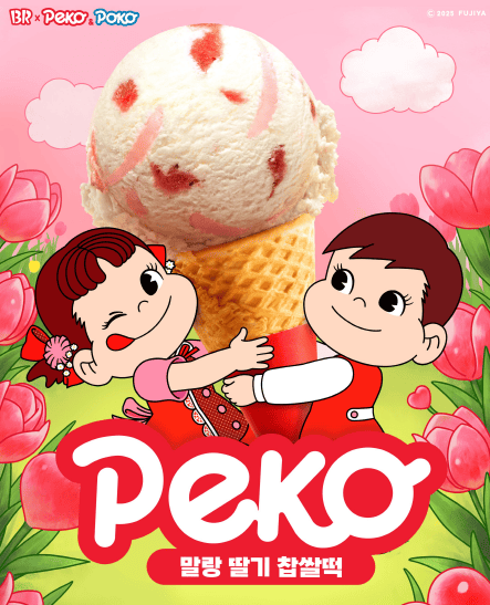 해당 메뉴는 딸기의 상큼함과 찹쌀떡의 말랑 쫄깃함이 어우러지는 플레이버로, 과일과 찹쌀떡을 함께 즐기는 디저트 트렌드를 아이스크림으로 재해석했다. 이번 제품은 일본 제과업체 후지야의 연유캔디 브랜드 ‘밀키(Milky)’와 협업했으며, 대표 캐릭터 ‘페코(Peko)’ 이미지를 활용해 화이트데이 시즌 분위기를 연출했다.
