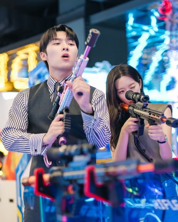 한편 오락에 빠진 두 사람의 모습이 미소를 자아낸다. 펌프부터 총싸움 스크린 게임을 즐기는 모습이 멀리서 보면 영락없는 연인처럼 느껴져 설렘을 자극하는 것. 수정은 한 쪽 눈을 지그시 감고 초점을 맞추고 있는데 진지한 표정에서 남다른 승부욕과 전투력이 느껴진다. 그런가 하면 주연은 적을 바로 명중시킨 듯 뿌듯하게 화면을 바라보고 있는데 이 모습이 비장하기까지 해 웃음을 자아낸다.