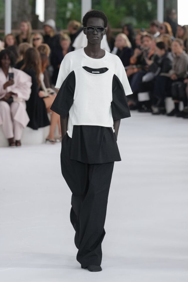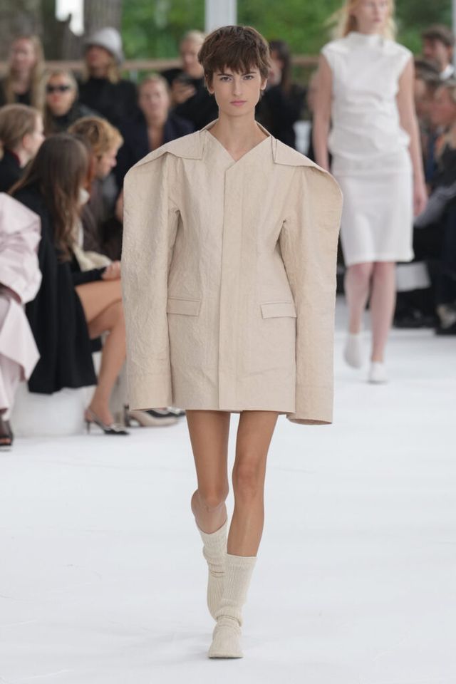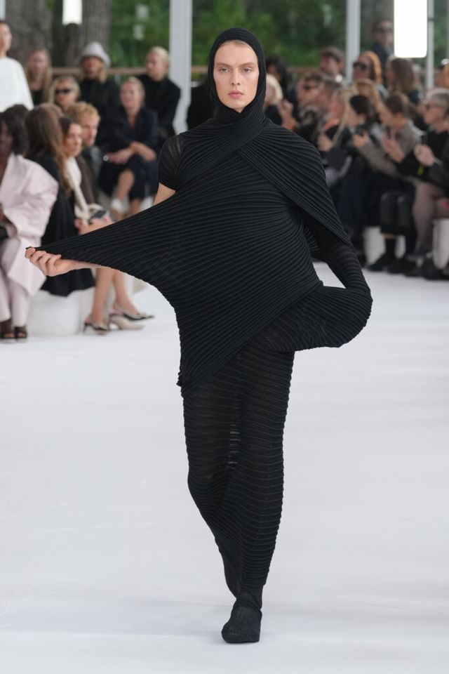 NOTE 종이의 아름다움을 패셔너블하게 조명한 컬렉션. 대마를 활용해 수작업으로 만드는 일본의 전통 종이 와시(和紙)에 레이온, 울, 면 등 다른 소재를 섞었다. 종이의 느낌을 최대한 살리면서도 웨어러블한 실용성을 잃지 않은 트렌치코트 스타일링이 있는가 하면, 하우스의 아이코닉한 주름을 적용하는 등 종이로 할 수 있는 다양한 시도에 충실했다. 이세이 미야케의 동양적 미학의 세계를 다시금 강렬히 느낄 수 있었던 쇼.