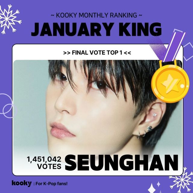 승한은 글로벌 케이팝 팬 커뮤니티 플랫폼 쿠키(Kooky)에서 1월 22일부터 2월 7일까지 진행된 ‘January King & Queen’ 남성 부문 투표에서 1위를 차지했다. 그는 총 145만 1042표를 획득했다.