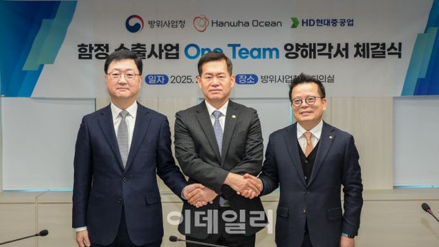 방위사업청과 HD현대중공업, 한화오션은 25일 방위사업청에서 함정 수출사업 ‘원팀’(One Team) 구성을 위한 양해각서(MOU)를 체결했다. 이번 MOU는 함정 수출사업 참여 시 정부와 함정업계가 하나의 팀으로서 HD현대중공업이 수상함 수출사업을, 한화오션이 잠수함 수출사업을 주관하고 상대 기업을 지원하는 내용이 골자다. HD현대중공업이 수상함 실적에서 상대적으로 우세하고, 한화오션의 전신인 대우조선해양 시절부터 잠수함 명가로서 입지를 굳건히 다져왔다는 점을 반영한 것이다.