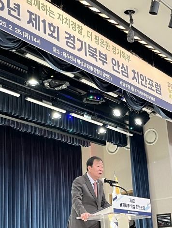 [와이뉴스] 경기도의회 안전행정위원회 임상오 위원장(국민의힘, 동두천2)은 25일 동두천시 평생교육원 한울림 공연장에서 개최된 ‘2025년 제1회 경기북부 안심 치안포럼’에 참석해 축사를 전했다.