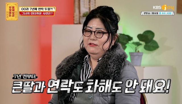 24일 방송된 KBS JOY '무엇이든 물어보살' 305회에서는 5년 전, 혈액암 판정을 받은 사연자가 7년 동안 큰딸과 연락이 두절된 이야기를 털어놓았다.
