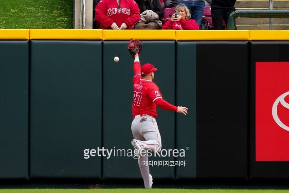 트라웃은 25일(한국시간) 미국 애리조나주 템피 디아블로 스타디움에서 열린 2025 메이저리그(MLB) 시범경기 샌프란시스코 자이언츠전에 1번 타자 겸 '우익수'로 선발 출전했다. 올 시즌에 앞서 우익수로 포지션을 옮긴다 선언한 뒤 처음 나선 경기였다.