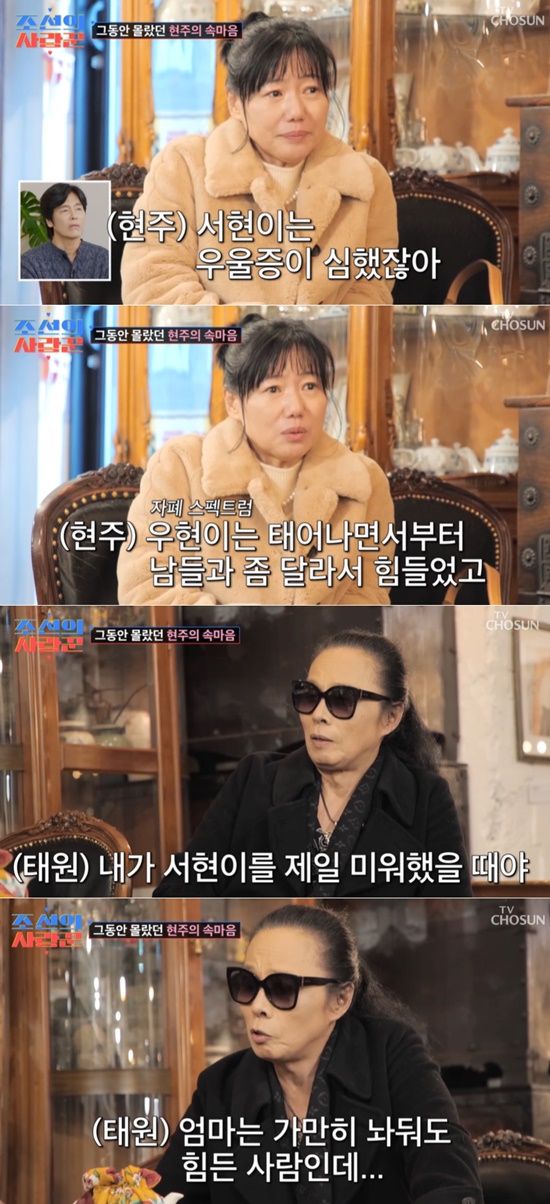 이현주는 "어릴 때 우현이 때문에 서현이를 많이 뿌리쳤다. 안 안아줬다"고 고백했다. 아픈 아들을 챙기느라 첫째 딸에게 소홀했던 것. 그러면서 "서현이가 지금은 다 이해하더라"라고 미안함을 전했다