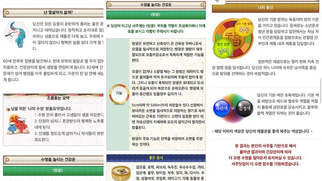 유전적 요인과 생활 습관이 수명을 좌우한다고 말하지만, 사주를 통해 인간의 운명과 수명을 미리 엿볼 수 있기도 하다.태어난 해, 달, 날, 시각으로 이루어진 여덟 글자(사주팔자)를 바탕으로 인생의 흐름을 예측하는 사주는 개인의 성격, 직업운, 재물운, 연애운뿐 아니라 건강운과 수명의 흐름까지 알 수 있다.