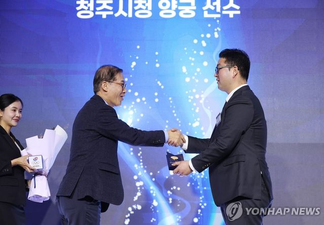 (엑스포츠뉴스 올림픽공원, 김환 기자) 지난해 열린 2024 파리 올림픽 3관왕을 차지한 김우진(청주시청)이 대한체육회 체육대상을 수상했다.
