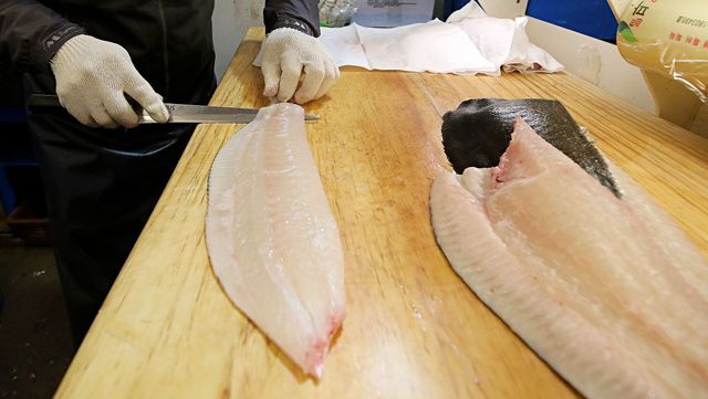 노량진 수산시장 내 활어매장에서 광어회 뜨는 모습. / 뉴스1