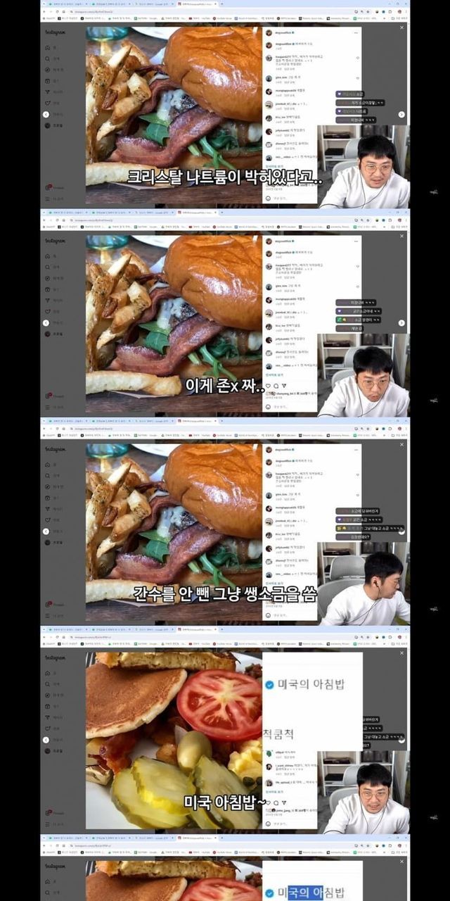 미국에 간 스트리머가 평한 미친 미국 음식의 맛.