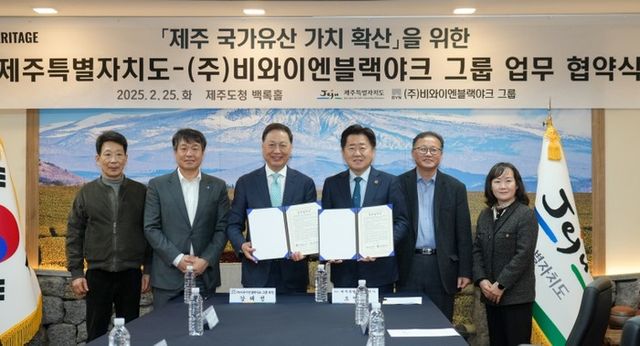 [파이낸셜경제=김예빈 기자] 제주특별자치도는 25일 주식회사 비와이엔블랙야크 그룹과 국가유산 가치 확산을 위한 업무협약을 체결했다.