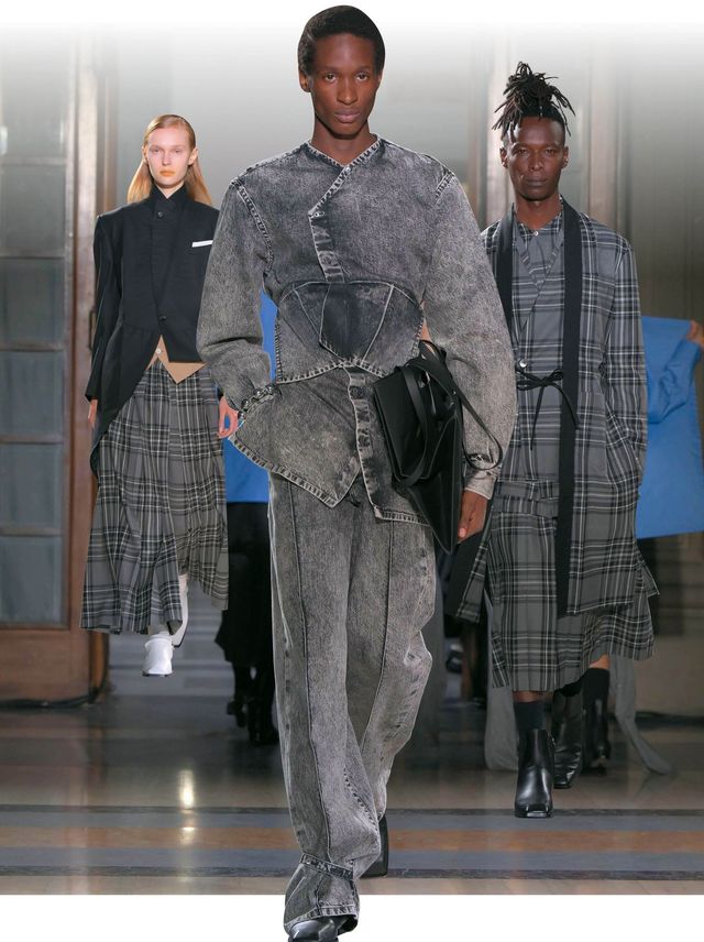 피티 워모 107에서 셋추의 디자이너, 사토시 구와타를 처음 본 건 아침 프레젠테이션에서였다. 행어에서 컬렉션 피스를 하나씩 꺼내, 수줍은 말투로 열심히 설명하던 모습이 인상적이었다. 그는 슈트로 정평이 난 런던 새빌 로에서 일하며 테일러링을 배웠고, 파리·뉴욕에서 경험을 쌓아 비로소 밀라노에서 브랜드 셋추를 론칭했다. 그 후 2023 LVMH 프라이즈에서 우승하며 이름을 알린 후 이번 피티 워모에서 최초로 패션쇼를 선보였다. 탄탄한 테일러링 실력을 바탕으로 동서양의 절묘한 조화를 추구하는 것이 셋추의 매력. 과거 자신이 만든 컬렉션 피스를 재구성해 새로운 형태로 내놓는 것도 브랜드의 장기다. 피렌체 국립도서관에서 진행된 이번 런웨이는 새로운 볼거리의 향연이었다. 테일러링 재킷에는 일본 정통 복식에서 착안한 치마를 매치했고 더블브레스티드 재킷에는 기모노를 스타일링했으며, 데님 셋업에는 오비(기모노 허리띠)로 포인트를 주었다. 상상만 해도 복잡한 공정을 실현할 수 있었던 건 새빌 로의 실력 있는 재단사 데이비스 앤 선즈(Davies & Sons)와 협업한 덕분이다. 첫 피날레에서 인사를 건네는 사토시 구와타의 후련한 미소가 지금도 생생하다.