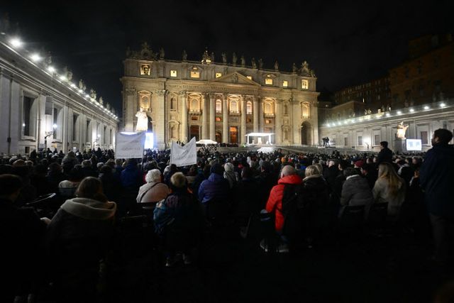 성 베드로 광장에는 수천명 사람들이 모여 그의 회복을 기도하고 있다.
