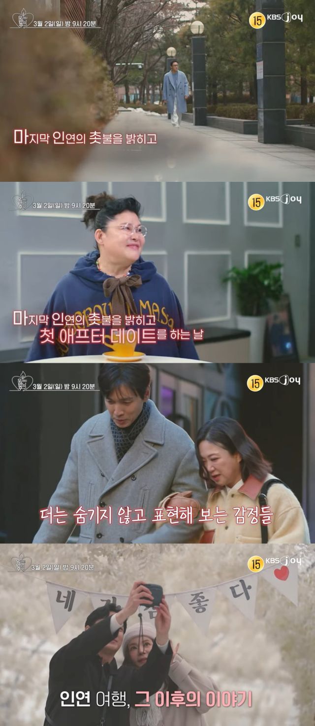 25일 KBS Joy·KBS 2TV 예능 '오래된 만남 추구'(이하 '오만추') 측은 공식 채널에 '오늘부터 1일? 최종 커플의 첫 데이트♡'라는 문구의 예고편을 공개했다.