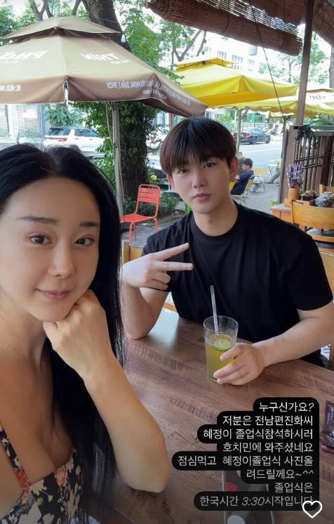 25일 함소원의 자신의 사회관계망서비스(SNS)에 전 남편 진화와 함께한 사진을 게재한 뒤 “혜정이 졸업식 참석하러 호치민에 와줬다”고 설명했다.