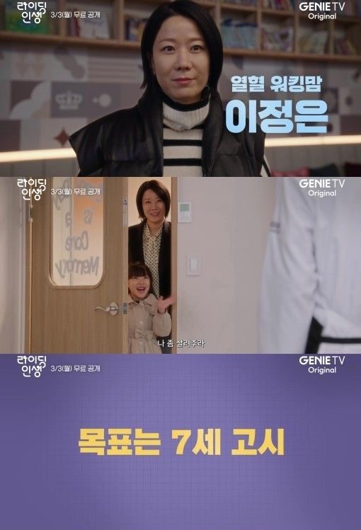 지니 TV 오리지널 드라마 '라이딩 인생’은 딸의 '7세 고시'를 앞둔 열혈 워킹맘 정은이 엄마 지아에게 학원 라이딩을 맡기며 벌어지는 3대 모녀의 '애'태우는 대치동 라이프를 그린 드라마다. 전혜진, 조민수, 정진영, 전석호 등 '믿고 보는'배우들과 '마더''악의 꽃’을 연출한 '드라마 장인'김철규 감독이 의기투합해 기대를 높이고 있다.