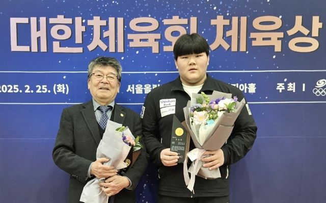 제71회 대한체육회 체육상 공로부문 최우수상을 수상한 강만순(왼쪽) 회장과 경기부문 장려상을 받은 이현지.