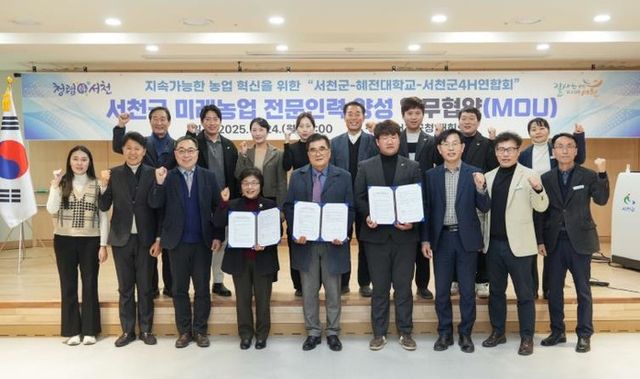 서천군은 지난 24일 서천군청에서 혜전대학교, 서천군 4-H연합회와 ‘미래농업 전문인력 양성을 위한 업무협약(MOU)’을 체결했다.