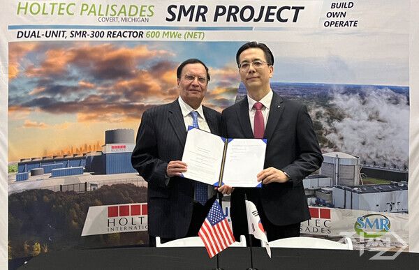 ‘팰리세이즈 SMR-300 FOAK 프로젝트’는 미국 시카고에서 북동쪽으로 약 120km 떨어진 미시건주 코버트에 위치한 팰리세이즈 원자력발전단지에 300MW급 SMR 2기를 신설하는 사업이다. 해당 부지는 홀텍이 소유한 원전 사업지 내에 위치하고 있으며, 지난해 2월 건설 부지를 최종 선정한 이후 지반 및 지질조사, 환경영향평가를 비롯한 현장 맞춤 설계를 수행하고 있다. 올 2분기 내 설계를 완료하고 올 연말께 착공에 돌입할 예정이다.