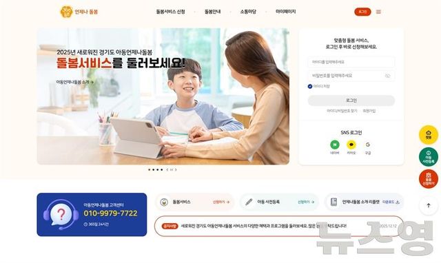 (뉴스영 이현정 기자) 경기도가 지난해 7월부터 선보인 아동언제나돌봄서비스가 도민들의 높은 호응을 얻고 있다. 핫라인콜센터(010-9979-7722) 운영 외에 온라인 플랫폼(www.gg.go.kr/always360)도 개설하면서 서비스 접근성과 편의성을 높인 결과다.