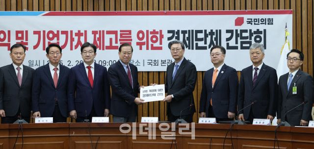 국민의힘과 경제 8단체는 26일 서울 여의도 국회에서 ‘주주 권익 및 기업가치 제고를 위한 경제단체 간담회’를 개최했다. 민주당이 27일 본회의에서 상법 개정안 처리를 예고한 상황에서 마지막으로 중단을 촉구하기 위해 모인 것이다.