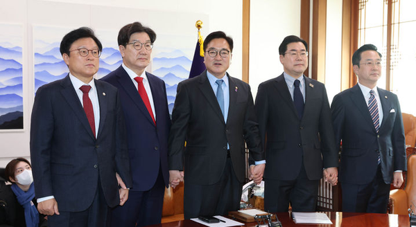 권성동 국민의힘 원내대표와 박찬대 더불어민주당 원내대표는 이날 오전 국회에서 우원식 국회의장 주재로 양당 원내대표 회동을 갖고 이같이 합의했다.
