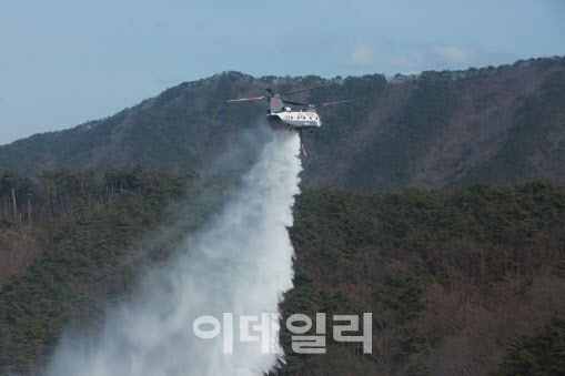 또 지난해의 경우 산림청은 담수량 9400ℓ 규모의 초대형헬기 CH-47D 5대와 담수량 4250ℓ 규모의 중형헬기 AS332L 2대 등 모두 7대의 임차헬기를 도입·운용했지만 올해는 예산 등의 문제로 AS332L 2대만 운용하는 등 헬기 부족 문제에 시달리고 있다.