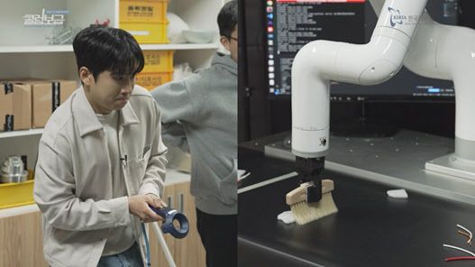 또 ‘협동로봇’을 처음 경험하는 미미미누의 모습도 담겼다. 미미미누는 로봇을 직접 조작하며 AI 기술이 적용된 ‘충돌회피’ 및 ‘모방학습’ 기능을 직접 체험하며 로봇이 단순히 프로그래밍된 동작을 수행하는 것이 아니라 실제 데이터를 학습하고 환경에 적응하며 진화한다는 점을 학습했다.