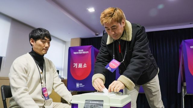 김병지 강원FC 대표이사가 26일 서울 종로구 축구회관에서 열린 제55대 대한축구협회장 선거에서 한 표를 행사하고 있다 / 뉴스1 (대한축구협회 제공)