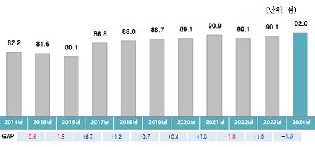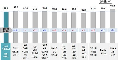 이번 조사결과 전체 사회서비스 만족도 평균점수는 92.0점으로 2023년 대비 1.9점 상승(90.1점→92.0점)했다.