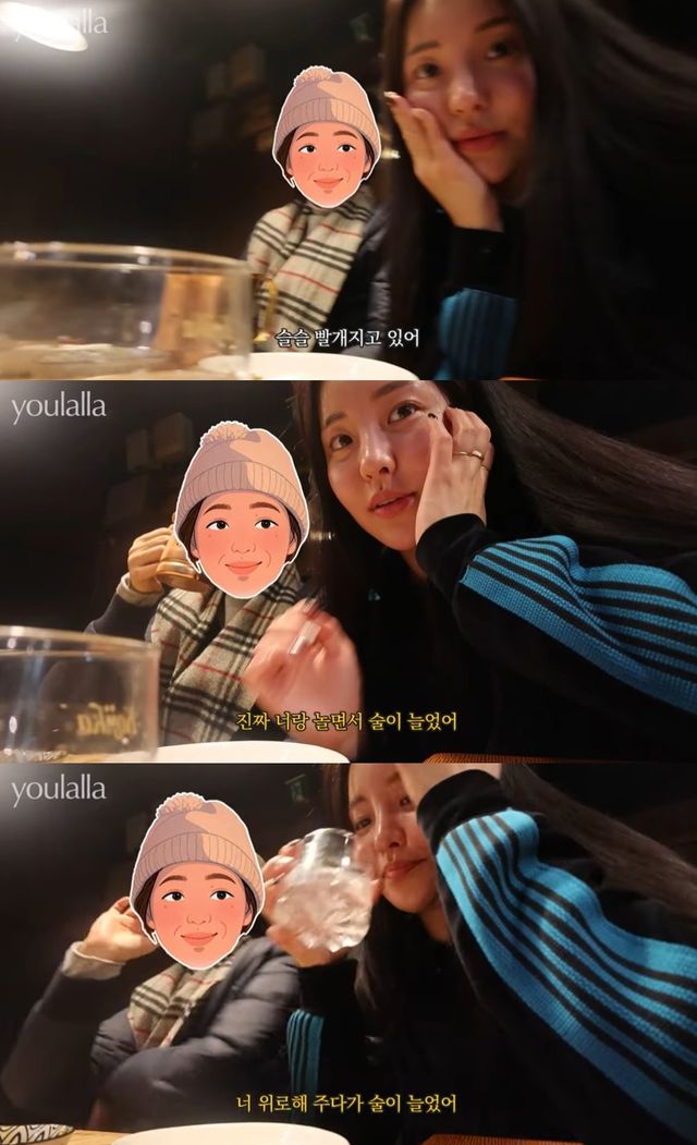 이후 식사를 하던 남유정은 “나 얼굴이 슬슬 빨개지고 있다”고 이야기를 꺼내며 "엄마는 안 빨갛냐"고 물은 뒤 그의 어머니 얼굴을 확인했다. 남유정은 "엄마는 안 빨갛다. 나랑 놀면서 술이 늘었나 보다"고 말했고, 그의 어머니는 "술이 늘었다. 너 위로해 주다가 술이 늘었다"며 웃었다.