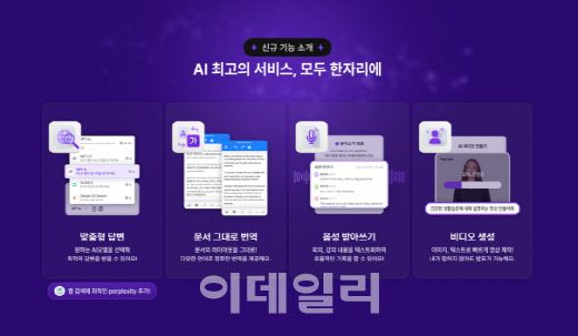 이번 업데이트를 통해 △AI를 활용한 심층 정보 검색(퍼플렉시티) △음성을 텍스트로 변환해주는 기능(클로바노트) △문서 전체 AI 번역(딥엘) △프리젠테이션에서 활용 가능한 발표 영상 생성(헤이젠) 기능이 추가된다.