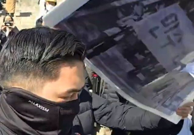 안씨와 배씨는 쿠데타 옹호 규탄을 위해 현장을 찾은 사람들을 막겠다며 인간띠를 형성해 통행을 방해하다 바닥에 드러눕기도 했다. 이후 현장을 떠나는 과정에서 구호를 외치던 학생이 들고 있던 피켓을 뒤에서 부숴버리는 등 폭력적인 행동을 하는 모습도 카메라에 잡혔다.