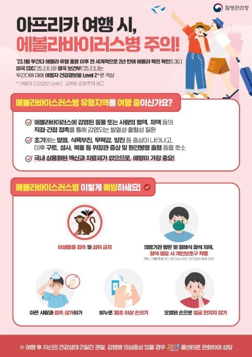 이에 질병관리청은 선제적 검역 대응을 위해 최근 발생이 보고된 우간다를 포함하여 확산 우려가 있는 남수단, 르완다, 케냐, 콩고민주공화국, 탄자니아, 에티오피아를 에볼라바이러스병 검역관리지역으로 지정하여 입국자 검역을 강화한다.