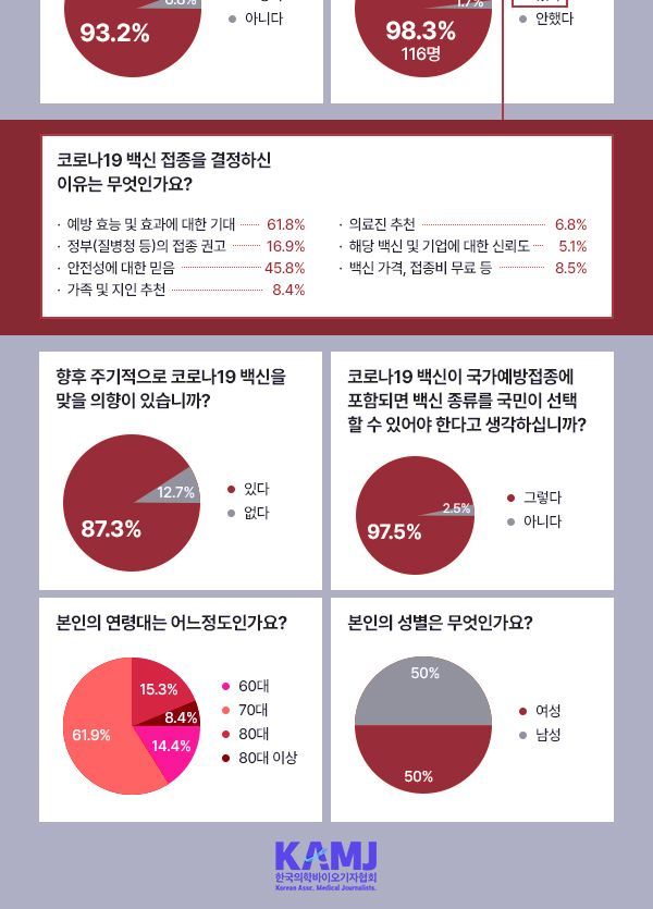 한국의학바이오기자협회는 이달 초 충남 태안군에 위치한 한 노인복지관 60세 이용자 118명을 대상으로 오프라인 설문조사를 시행했다.